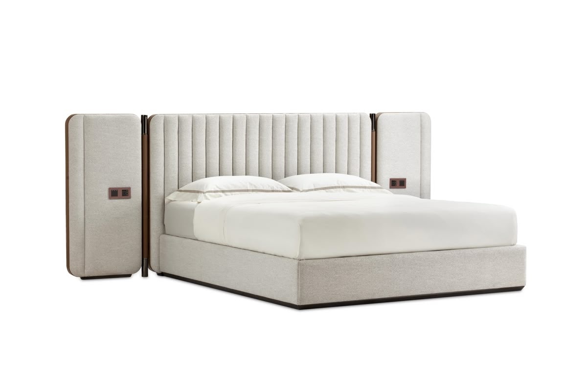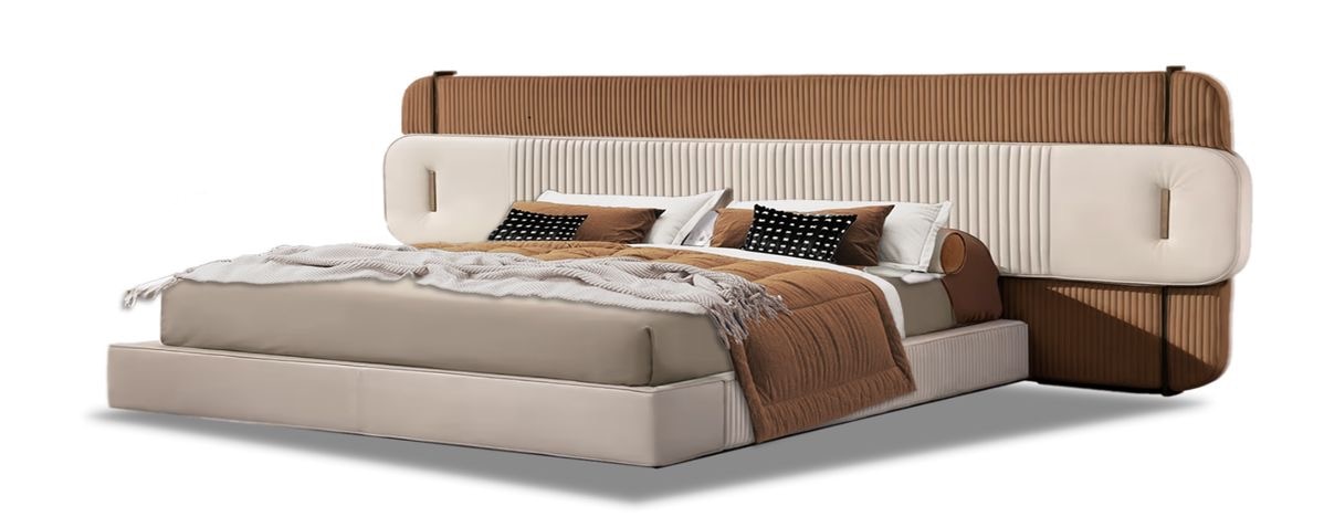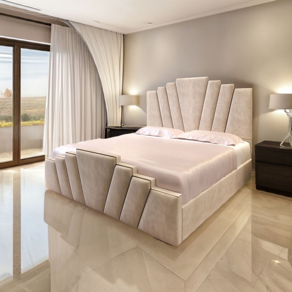 Fully aposted Double bed in solid wood, leathrite fabric that is easy to clean. Customisation available. Choose your fabric, size or headboard design.