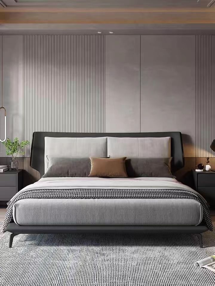 Add a touch of modern elegance to your bedroom with a premium Upholstered Bed with Metal Strip in Suede Fabric from Blessings Furniture. Designed to combine luxury, comfort, and contemporary style, this bed is the perfect centerpiece for sophisticated interiors. Premium Suede Fabric Upholstery At Blessings Furniture, we use high-quality suede fabric that offers a soft, smooth, and rich texture. The plush upholstered finish enhances comfort while giving your bedroom a warm and luxurious feel. Stylish Metal Strip Detailing The sleek metal strip accent adds a refined and modern touch to the bed’s design. This elegant detailing creates a beautiful contrast against the soft suede fabric, giving the bed a bold and premium appearance. Strong & Durable Construction Built with a sturdy internal wooden frame and high-density cushioning, this upholstered bed ensures long-lasting durability and excellent mattress support. The strong base structure provides stability and comfort for everyday use. Key Features: Fully upholstered in premium suede fabric Elegant metal strip highlight Comfortable cushioned headboard Strong and durable wooden structure Modern and luxury design Custom sizes and color options available Perfect for Contemporary Bedrooms An Upholstered Bed with Metal Strip in Suede Fabric from Blessings Furniture transforms your bedroom into a stylish and comfortable retreat. Ideal for modern and luxury interiors, it blends sophistication, durability, and superior craftsmanship. Choose Blessings Furniture for beautifully crafted beds that reflect quality, comfort, and elegant design. Contact us today to explore our exclusive collection!